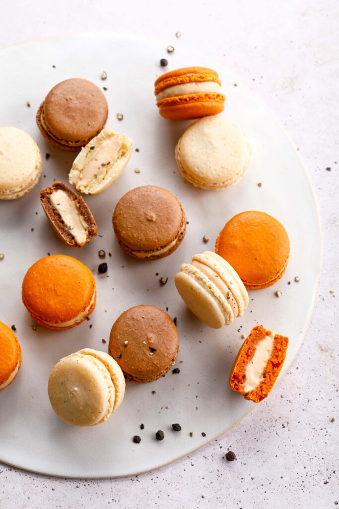 Dressez les macarons farcis sur un plat rond et servez.
