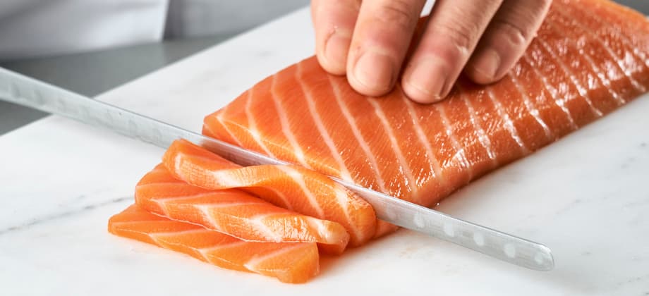 De par la délicatesse et la précision qu’elle nécessite, la technique du tranchage manuel du filet de poisson reflète toute l’expertise de nos spécialistes, longuement formés dans nos ateliers. L’obtention de tranches fines et régulières nécessite en effet un apprentissage long et exigeant.